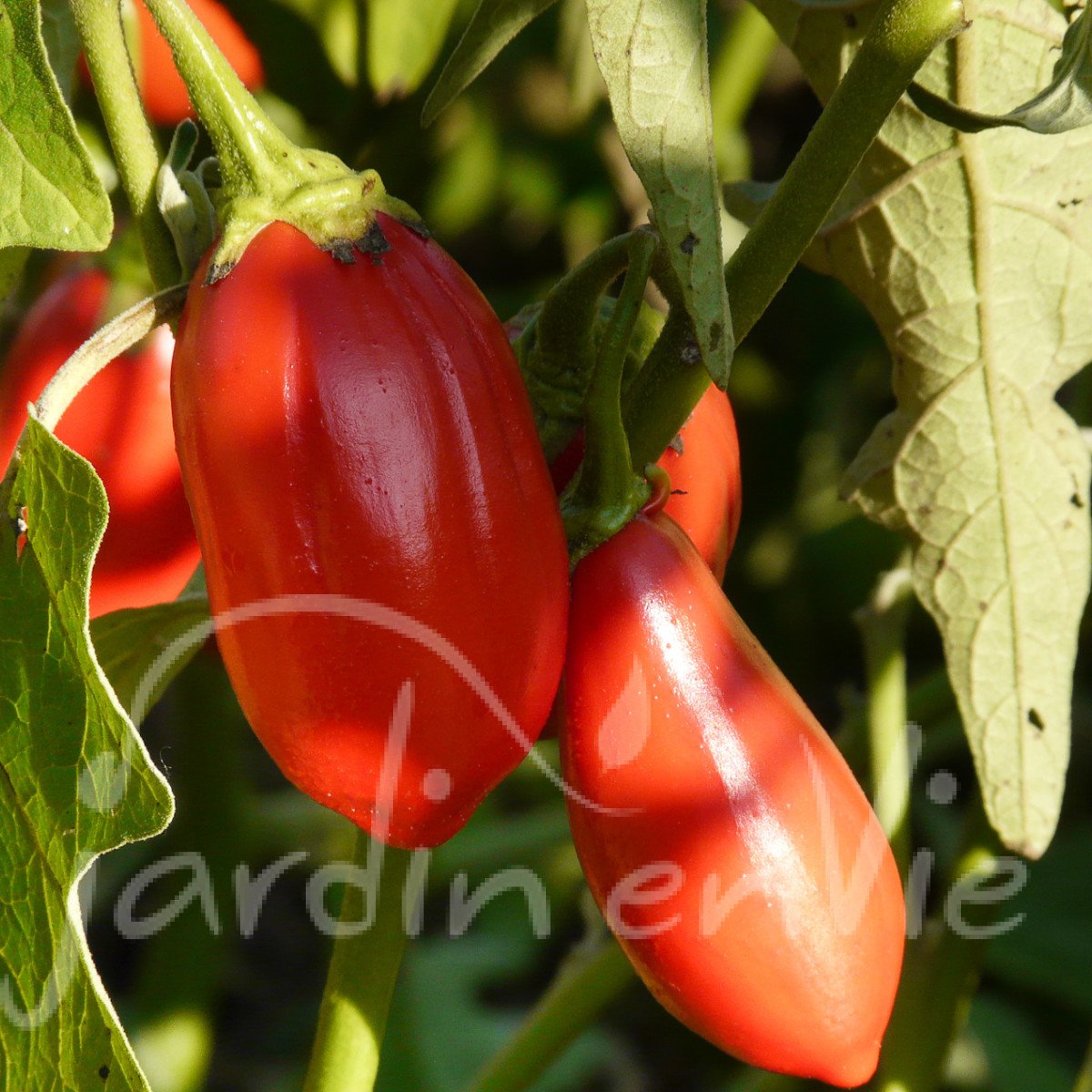 Variété à fruits rouge en forme d'oeufs, très productive et très résistante. Saveur douce et agréable, parfaite en ratatouille.