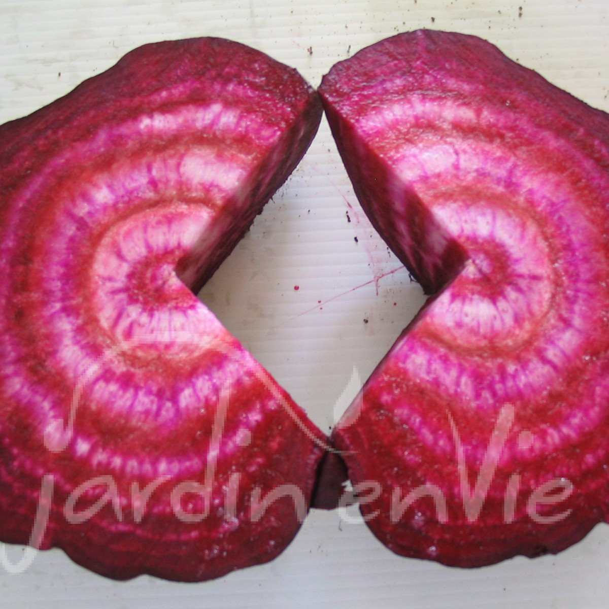Superbe variété ronde, à la chair sucrée, rose veinée de blanc. Excellente crue en salade, d'autant qu'elle perd sa couleur à la cuisson. La Betterave de Chioggia est une variété très hâtive qui porte le nom de la ville italienne dont elle est issue.