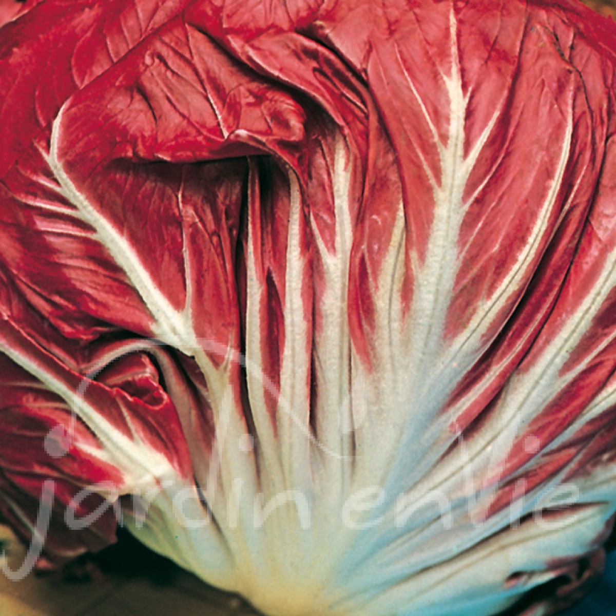 (Cichorium intybus L. - asteracée) Variété ancienne qui forme de grandes feuilles qu’il faut couper en fin d’été ; elle repousse alors en formant une petite pomme serrée rouge et blanche. Le froid et les gelées enlèvent l’amertume des feuilles et leur donnent un goût très agréable. Très résistante au froid. Semis de juin à août en place ou en pépinière, en rangs espacés de 40-50cm. Eclaircir à 25-30cm. Récolte de déc. à mars