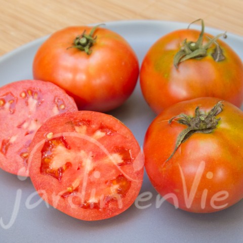 Variété population connue depuis longtemps. Une classique de belle saveur. Plutôt précoce. Fruit de couleur rouge foncé, calibre moyen, légèrement aplatit. Croissance indéterminée