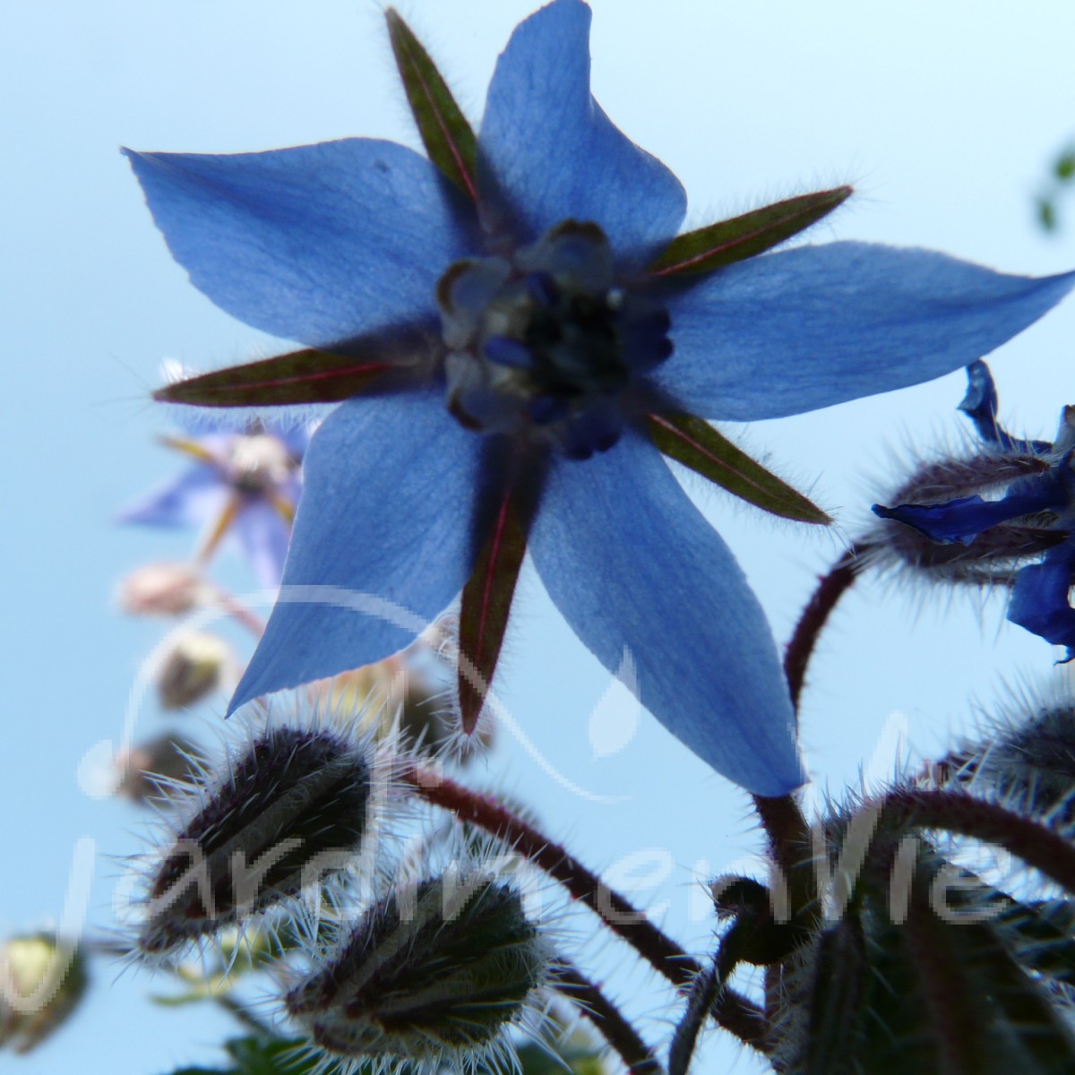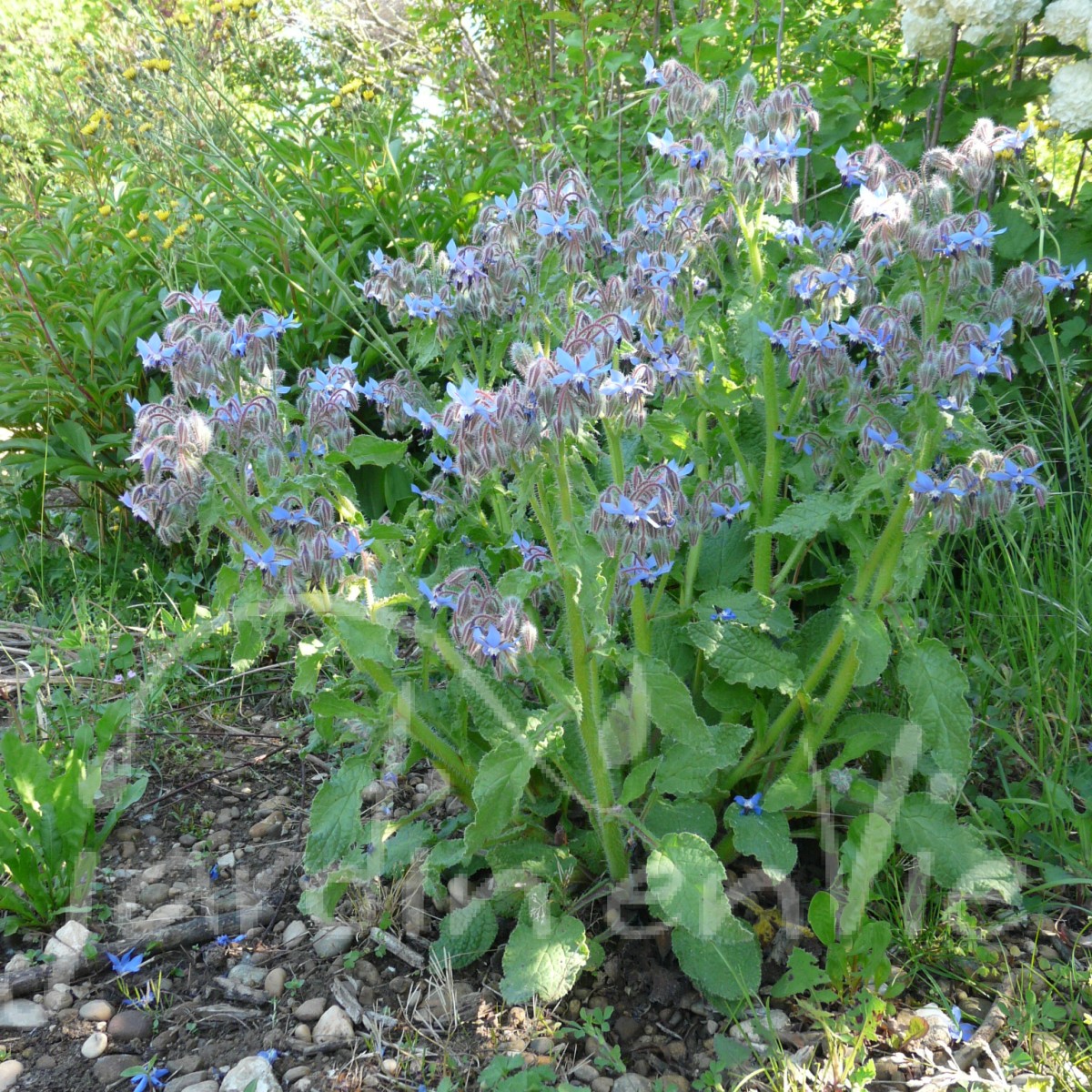 (Borago officinalis L. - Boraginacée). Floraison jusqu'aux gelées de belles fleurs bleues mellifères. Les jeunes feuilles peuvent être consommées en salade ou potage. Les fleurs en tisane ou en décoration (glaçons...). Apprécie les arrosages réguliers. Se ressème facilement. Semis direct mi-avril à juin, en lignes distantes de 40 cm. Éclaircir à 30-50 cm. Germ. 10-15 jours. Semis possible en août sept.
