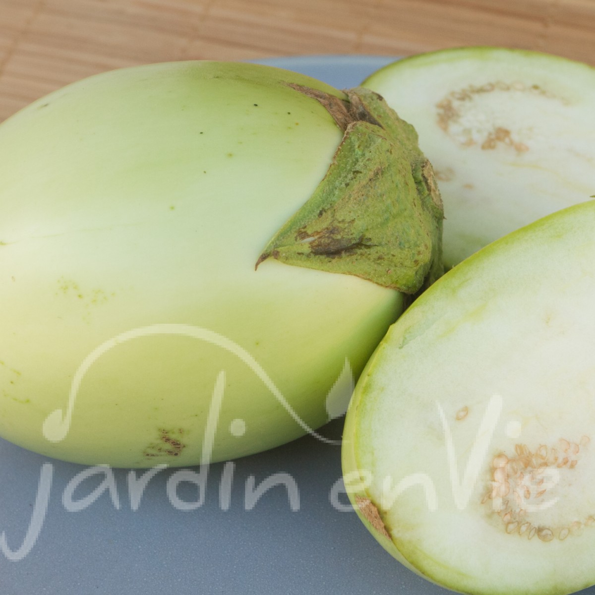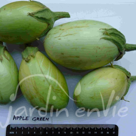 Variété à fruits vert pâle de la taille d'une pomme, très productive. Les plants restent petits et sont couverts de fruits à récolter verts pour éviter l'amertume. Saveur douce sans amertume.