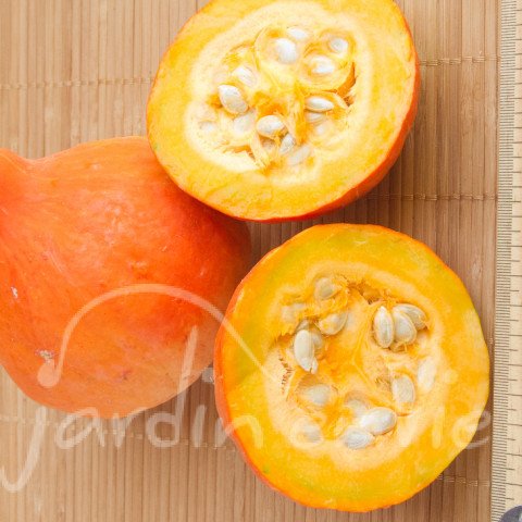 (Cucurbita maxima). Une mine de vitamines (A, E) et de minéraux, très concentré en oligo éléments, il pousse partout et n'exige qu'un sol bien ameubli et des arrosages réguliers. Coureuse produit de 2 à 5 fruits par pied, de 1.5 kg à 3kg. (env. 7 grn/g)
