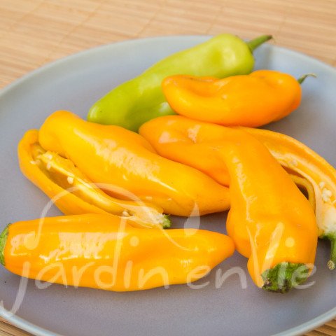 Variété de poivrons doux, jaune d'or à maturité complète, demi-pointus, côtelés de taille moyenne. Récolter les premiers fruits de manière précoce augmente le nombre de fruits produits... Pour crudité ou cuisson.