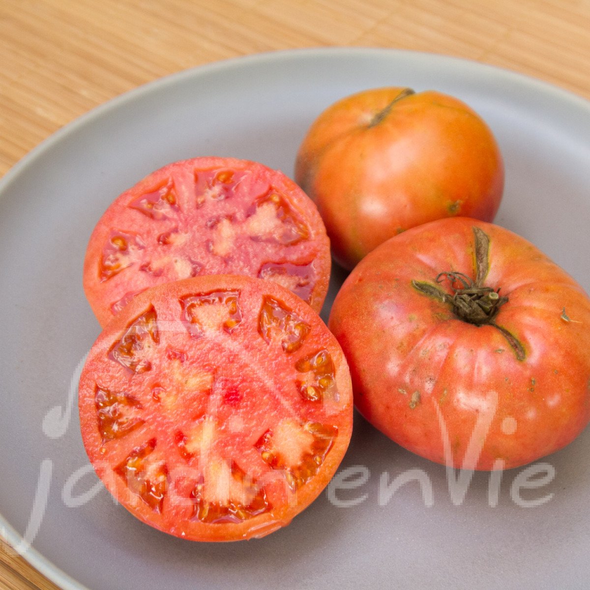 Variété originaire de Sibérie de type beefsteak plutôt précoce pour une tomate à gros fruits rouges violets (200-300 g). Port indéterminé mais bon comportement si on ne la taille pas (port buissonnant). Coupée en tranches elle reste ferme à la cuisson. Très bonne saveur.