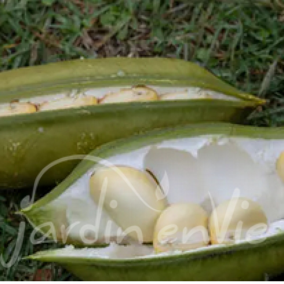 Très précoce, cette variété naine produit une gousse de 6 à 7 gros grains blancs. En sec ils ressemblent au haricot soisson. Cueilli en frais, les gousses font d'excellents haricots mangetout. Elles peuvent se déguster à tous les stades de maturité.