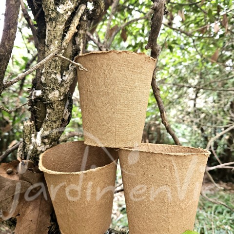Pot , fabriqué en fibres végétales,  100% naturels et biodégradables . Utilisé pour le repiquage et/ou la plantation directe en pleine terre.