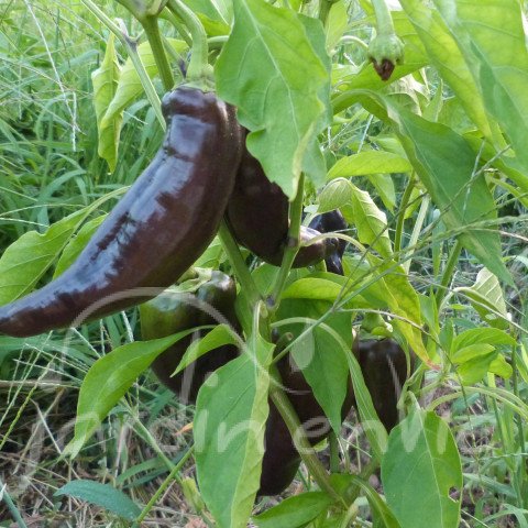 Magnifique poivron à gros fruits allongés pouvant mesurer plus de 20 cm, chair douce et fruitée, de couleur noire en début de végétation, les fruits finissent rouges