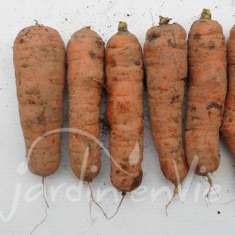 Variété de carottes précoces (90 à 100 jours) à racine demi-longue cylindrique . Peut être forcée sous serre. Peut servir soit en bottes si semis au printemps ou en primeur si semis en juillet ou aout. Semis clair en lignes distantes de 30cm à partir de mars - avril. Éclaircir à 5/8cm. Associer avec radis et coriandre sur le rang et poireaux entre rangs.