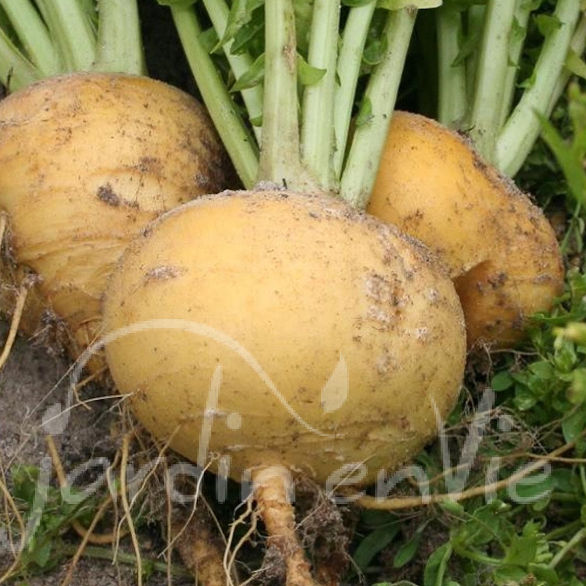 Excellent navet de couleur or et à la chair orange. Variété bien adaptée à la culture de plein champ et pour les cultures de printemps sous abri. Semis de août à mi-sept et fév - mars sous abri, en lignes de 30-40cm. Eclaircir à 10-15cm.
