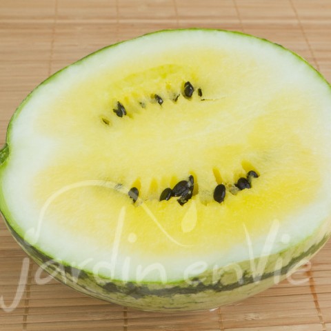 (Citrullus lanatus, Cucurbitacée). Syn : Early moonbeam. Variété à fruits de 2 à 3 kg à chair jaune vif, ferme et juteuse. Très bonne saveur sucrée. La peau est vert pâle striée de vert foncé. Précoce, adaptée aux climats frais. Cycle de 80 jours.
