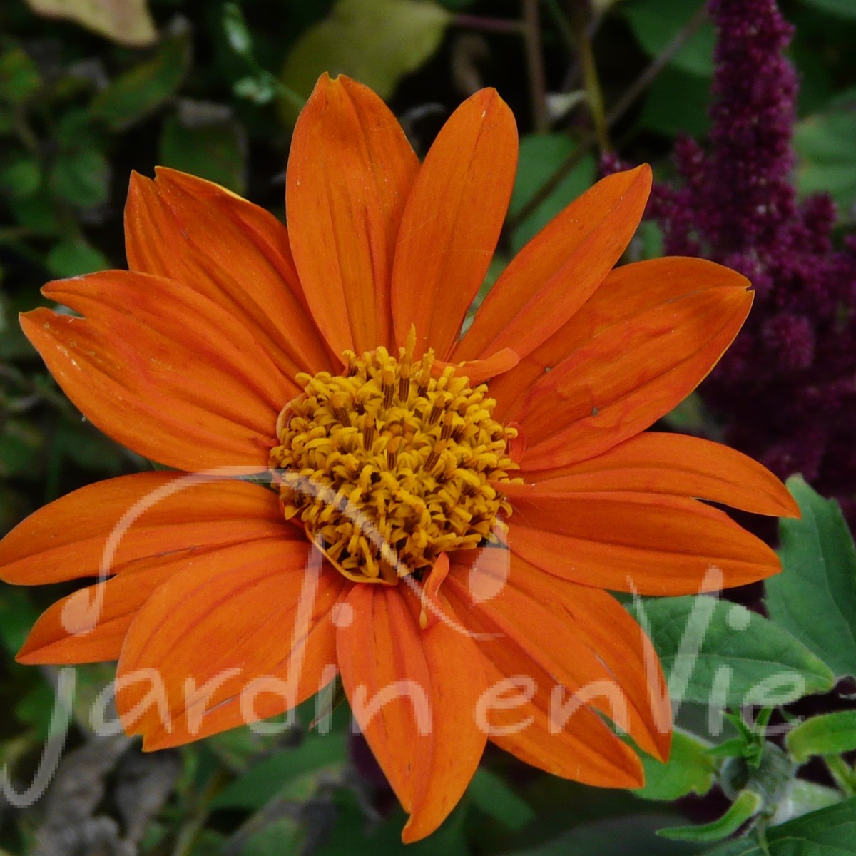 (Tithonia – Asteracée) Magnifique plante au feuillage velouté, de la taille d'un arbuste. Connu sous le nom de tournesol mexicain, elle se contente de peu et pousse dans tous sols y compris les plus pauvres. Nectarifère, elle attire de nombreux insectes dont le papillon monarque. Grosses marguerites oranges de 6/7cm de diamètre. Annuelle. H 150-200 cm, F juil – oct Semis en godets en avril ou direct mai-juin, germ. 1-2 semaines, espacement 50x60 cm.